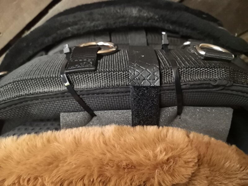 Sille55 schreef:Ik heb 2 rechthoekige zwarte sponzen gebruikt. Daar tie wraps doorheen gestoken en zo aan de longeersingel vast gemaakt.
