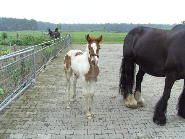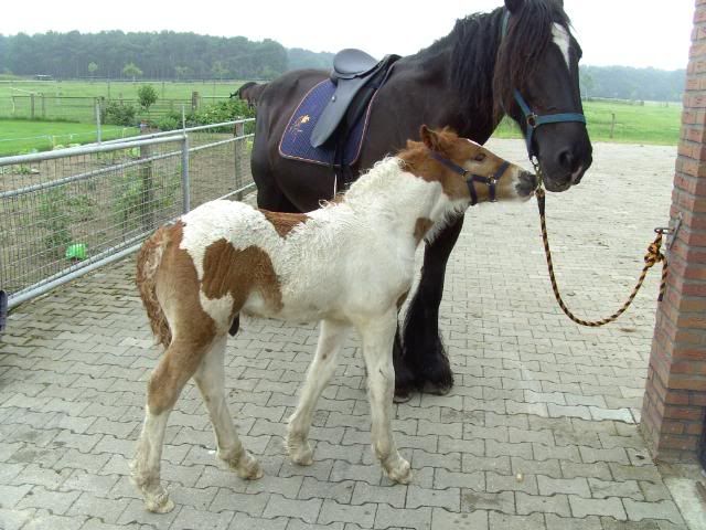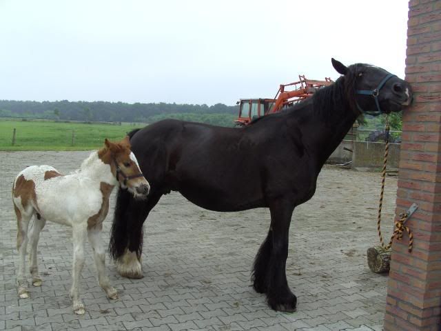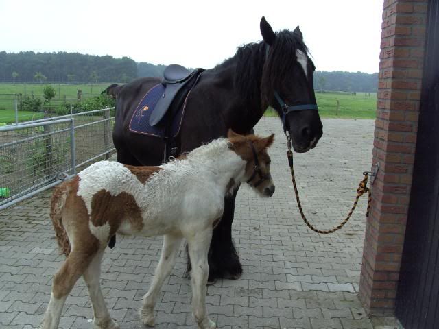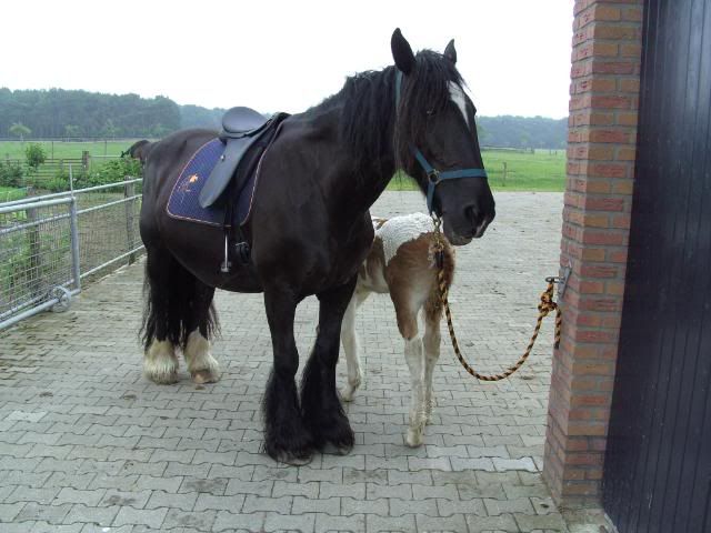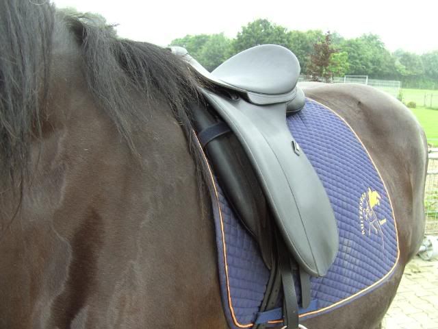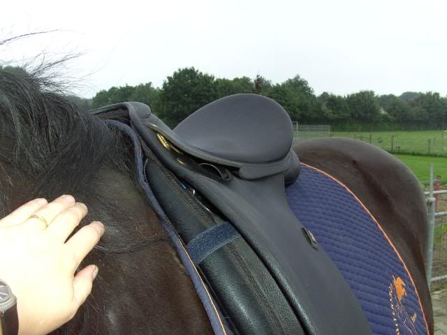 De singel zit in verhouding wat te ver naar voren, maar ik moet een iets langere aanschaffen en Tinka is 15 mei bevallen van het veulen wat op de foto's erbij staat, dus haar buikje duwt de singel zelf wat verder naar voren ook al zou ik een langere singel hebben denk ik.
