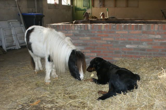 Mijn pony is dan ook maar even groot als de gemiddelde bouvier :) Mijn nicht heeft Newfoundlander van 6 maand en die is nu al even groot als pony.
