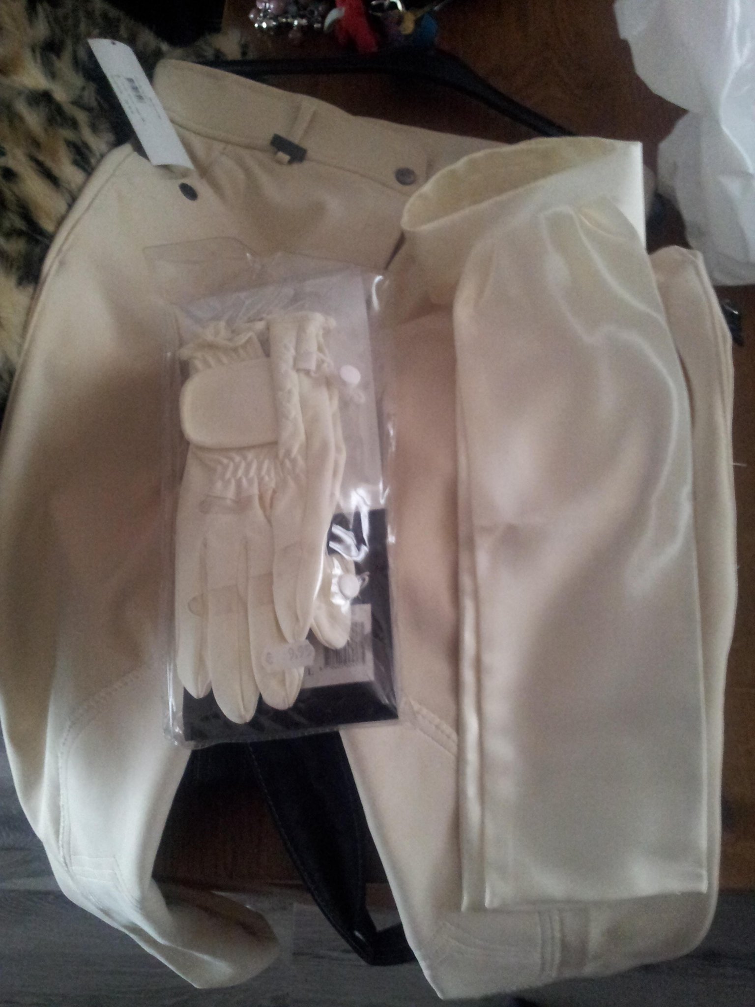 Ik ga in maart ong. starten in het gebroken wit. Een Anky pad in het gebroken wit, oornetje, zwart/krijtstreep wedstrijdjasje en dit setje kleding: