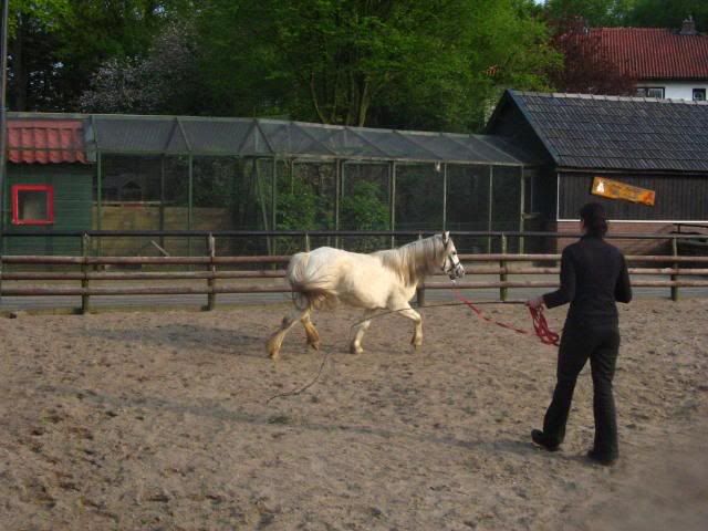 Ik ben benieuwd hoe het met Tess gaat. Zo heette de merrie in ieder geval toen ze op mijn werk stond. Het is een welsh a merrie (geen papier erbij, wel paspoort) van ongeveer 10 jaar, een schimmeltje.