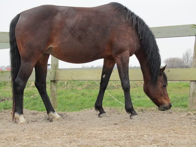 Ze is 1.40m hoog en heeft een druipkol en 2 witte achtervoetjes.