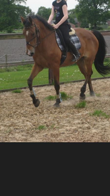 Het is een merrie van waarschijnlijk nu 19 jaar. Wegens omstandigheden ben ik haar uit het oog verloren.