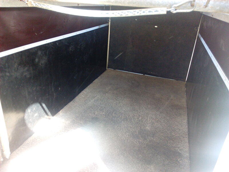Er komt een rubbere losse mat in te liggen , op de wanden komt rubbere wandbescherming, op de laadklep ga ik de houten latten eraf halen en een rubbere mat met latjes erop bevestigen.
