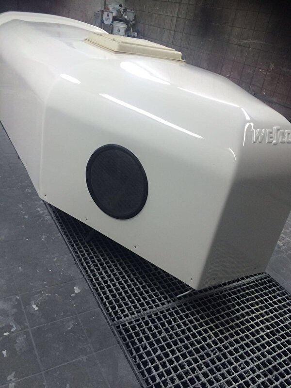 Toen hebben we de trailer weggebracht naar een kennis die de nieuwe wanden aan de buitenkant wit heeft gespoten en de kap heeft gespoten en lak overheen gedaan heeft.