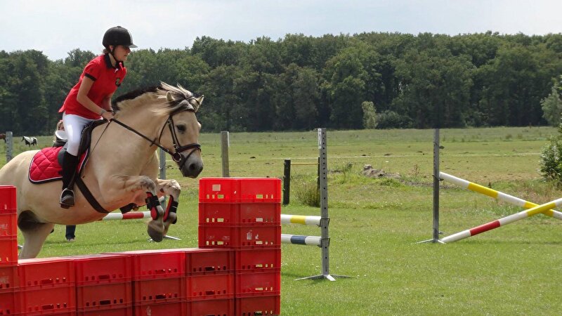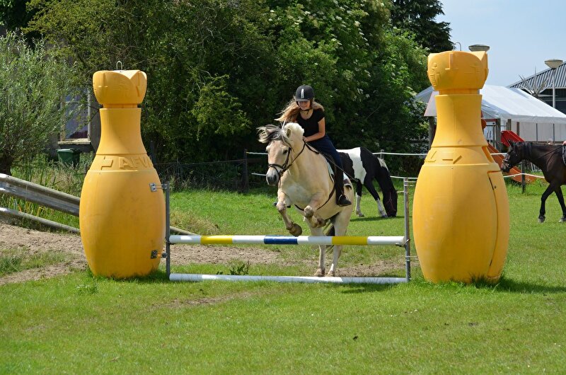 Hij is ook erg rustig in de omgang en laat heel veel toe; ik heb altijd van z'n kont kunnen glijden en met hem kunnen knuffelen als hij in het weiland lag. Tijdens het rijden was hij echter wel heel voorwaarts en maakte hij zich soms erg sterk (maar dat "gevechtje" won ik altijd heel snel ;) ).