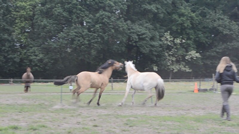Mijn pony Utelo heeft hengstgedrag en niet zo'n klein beetje ook. Natuurlijk is de periode van dr hengstige merries ook begonnen maar hij heeft bij elke merrie deklust en jaagt de ruin die in de kudde staat weg.