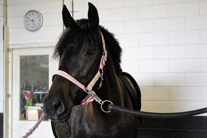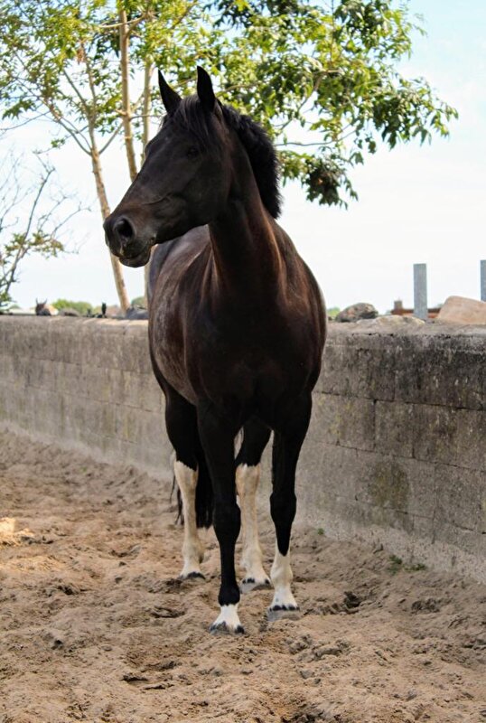 [EG]Belle zwarte pony van 156 cm 2 witte achterbenen
