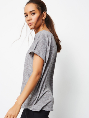 Bij de sportafdeling kijken? Sportshirts of bijv yoga hemdjes zijn vaak wat langer. Dan loop je ook in een legging en is het soms wel fijn als je billen gewoon bedekt zijn