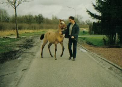 Het is een buckskin Of een Red Roan Maar ik weet niet meer zo hoe ie ingeschreven staat.