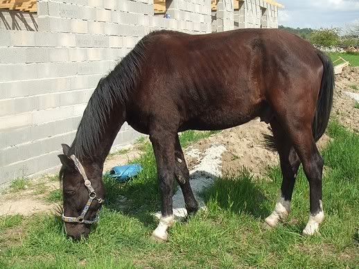 nu ging ik vorige week zaterdag langs om te kijken en trof een heel mager paard aan. daar heb ik wat van gezegd en zij blijf maar volhouden dat hij er al zo uitzag toen ze hem kreeg. ondertussen zat ik in de stress want ik vond niet dat hij er gezond uitzag. Toen kwam er een beetje ruzie tussen ons, en heb ik uiteindelijk gezegd dat ik hem weer op wou komen halen. 'Nee' zegt zij, hij is nu van mij! "WAT!!" Boos! dat dacht ik dus mooi van niet.