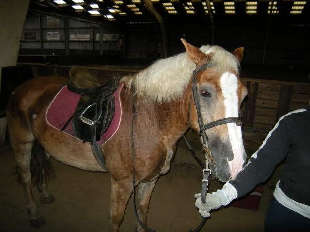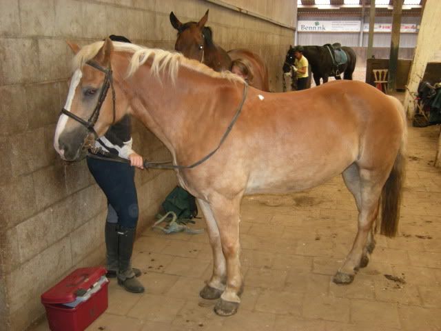 . Ik denk dat hij een jaar of 10, 15 is? Weet ook niet of het een volle haflinger is met papieren.
