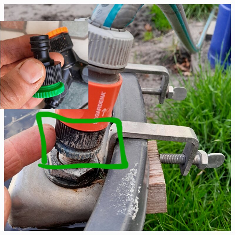 Die draai je op de vlotter en daar klik je slang op.