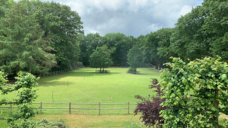 Ik had het geluk dat de vorige bewoners paarden hadden dus alles was al omheind en de stallen en bak waren er ook. Ik gebruik de bak als paddock. Het liefst zou ik een aparte paddock willen maar ik kom al gras te kort dus daar wil ik niet op inleveren dus dan maar zo. De bak is wel in 2 verdeeld want heb 2 bijna 2-jarige hengsten staan en 2 merries dus die wil ik niet samen. Afgelopen jaar hebben wij wel een nieuwe pomp en baksproeiers aangelegd (bestaande moest vervangen worden) . Dat was wel even een investering. En de bak was voor de helft omheind met prik paaltjes dus daar ook een houten omheining geplaatst.