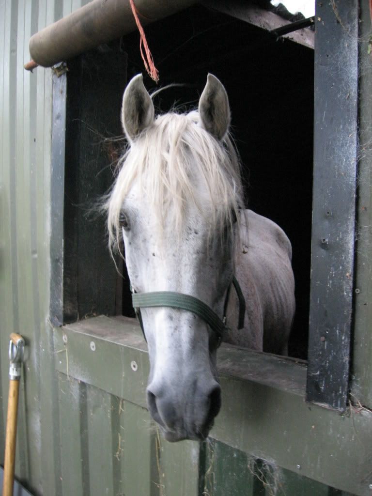 Vorige week maandag werd ik gebeld dat B. een paard heeft gekocht. Appie, een 18 jarige arabier. Hij heeft wedstrijden gelopen. We weten niet hoever. De laatste 2 jaar heeft hij in het land gestaan. Hij was wat mager toen hij kwam, maar dat is nu al een stukje beter.
