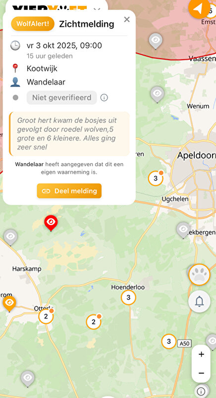 tienus63 schreef:Ondanks dat de melding niet geverifieerd is toch maar even melding vanuit de app Viervoet vanwege het aantal wolven.