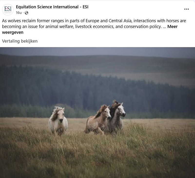 02-11-2025 UK: Equitation Science International - ESI schenkt aandacht aan omstreden studie .WeN: het gaat om een LITERATUURONDERZOEK door prowolf wetenschappers, bekend van publicaties op de "Vereniging voor de bevordering van de wetenschap over paarden en wolven" (VFWPW) https://www.pferdundwolf.de/
