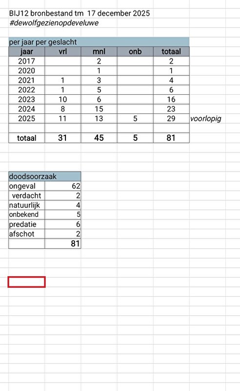 Overzicht dode wolven