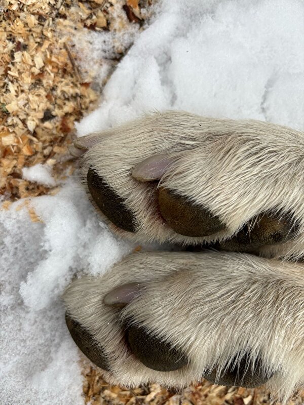 De klauwen van de gevallen wolf waren op alle poten wit. Foto: Aanvrager van ontheffingsvergunning