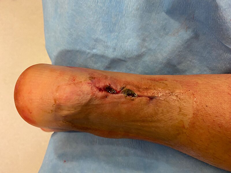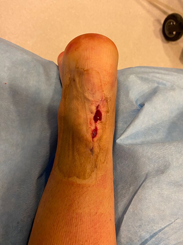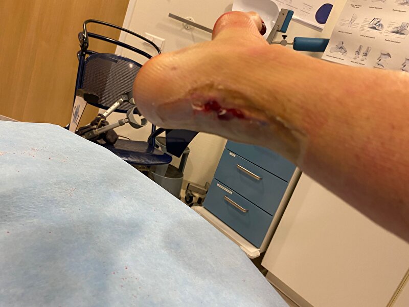 3 maanden zoet geweest met wond verzorging, zilveralginaat en speciale pleisters die op maandverband leken![]()