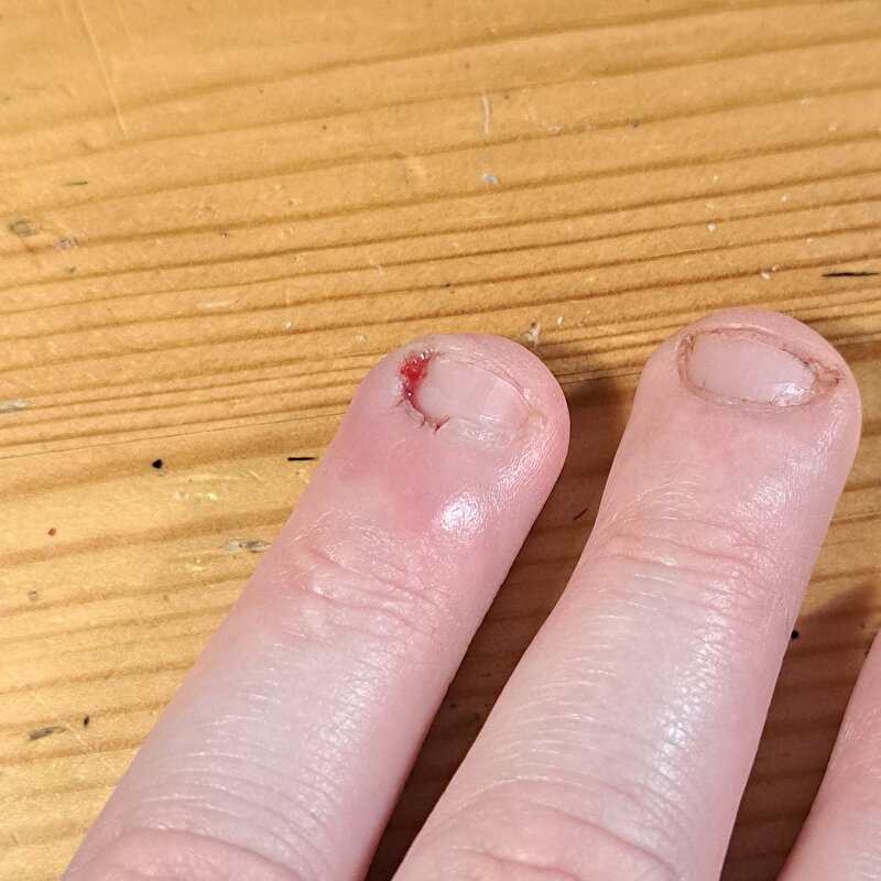 Initieel in het gips niet zoveel te zien. Tot de gipsmeester het antibacterieel verband eraf haalde, toen werd het een soort vulkaan. Kennelijk werkt dat als een soort kurk. Nu dus wel echt een flinke infectie geworden.