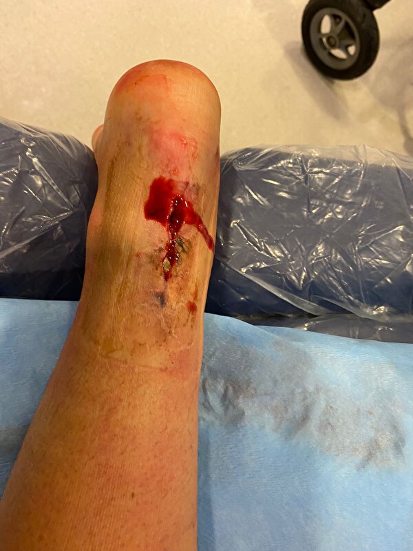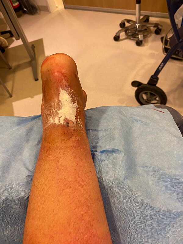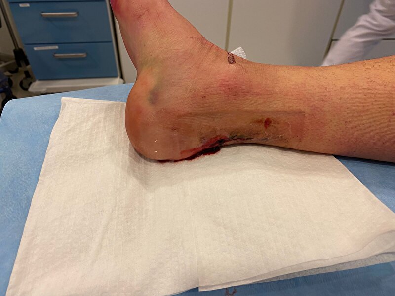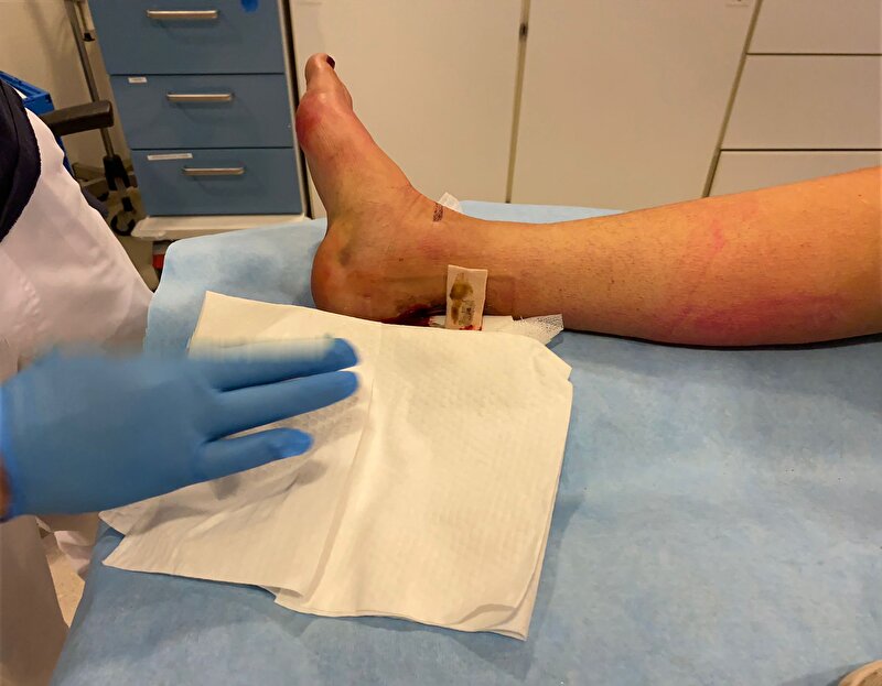 Door dat gips kan ik het niet zelf spoelen, maar gezien hoe ver er prut in zat/zit was dat ook niet gelukt. Enkel en hak waren dus ook opgezet door de infectie, ter hoogte daarvan zat ook troep.