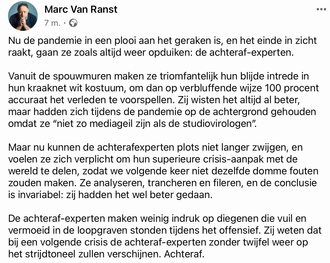 Celestial schreef:we komen nooit meer van Corona af, dit is een nieuwe ziekte waar we mee moeten leren leven.Helaas is mijn vraag weggehaald uit een ander topic, vandaar dat ik hem hier nu opnieuw stel. Ik hoop dat er mensen zijn die, ondanks de vele respectloze discussies die ik her en der zie ontstaan, de moeite willen nemen om antwoord te geven.Ik veroordeel niet-gevaccineerden zeker niet, ik ben vooral benieuwd naar hun redenaties.