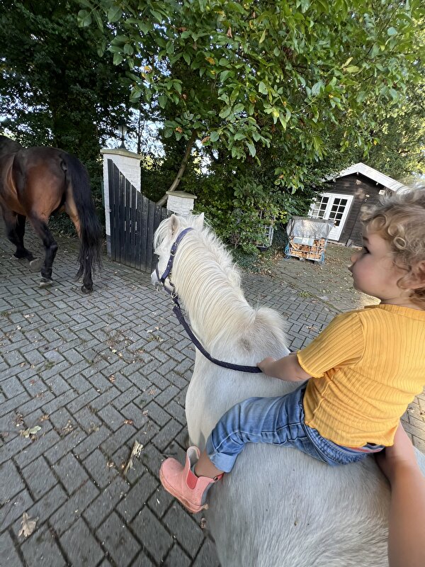 Gek op haar pony. En wilt heeeeel graag rijden. Dus ff opzoek naar een fijn zadeltje waar ze hou vast heeft. Al is het nu altijd zonder zadel en ze zit perfect.