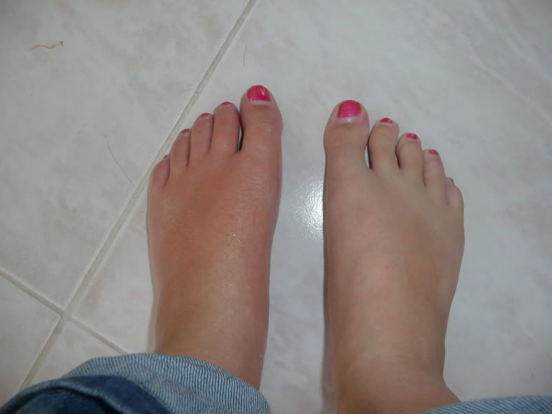 Gisteravond kwam ik erachter dat mijn voet hélemaal dik was, onder de bultjes zat, rood was. En het begon te jeuken als een gek, mijn voet is ook stijfjes. Ik ga sowieso de dokter bellen om te kijken of ik vanmiddag terecht kan, maar wát is dit?Er is enkel heel veel zand in mijn schoenen gekomen, welke ik heb uitgeklopt, en met mijn voet (met sok aan) op mos heb geleund. Mijn andere voet heeft dit niet. Ik heb er wel even een foto van gemaakt. Ik vind ze zelf niet vies, geen grote gapende wonden, geen bloed o.i.d. Maar zal ze voor de zekerheid even in een linkje plaatsen!