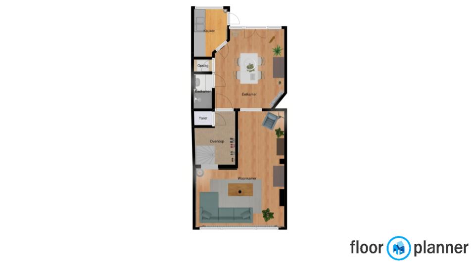 Ook even bezig geweest op Floorplanner, vind zo'n L-vormige woonkamer heel lastig. Er staat nu nog heel veel studentenmeubilair maar dit is wat ik uiteindelijk een beetje wil. Vraag me alleen af of er in de woonkamer voldoende loopruimte overblijft..
