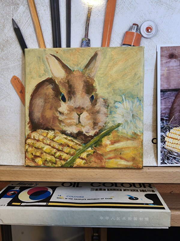 En wat een lief konijntje ben je aan het schilderen, nu al lekker pluizig!