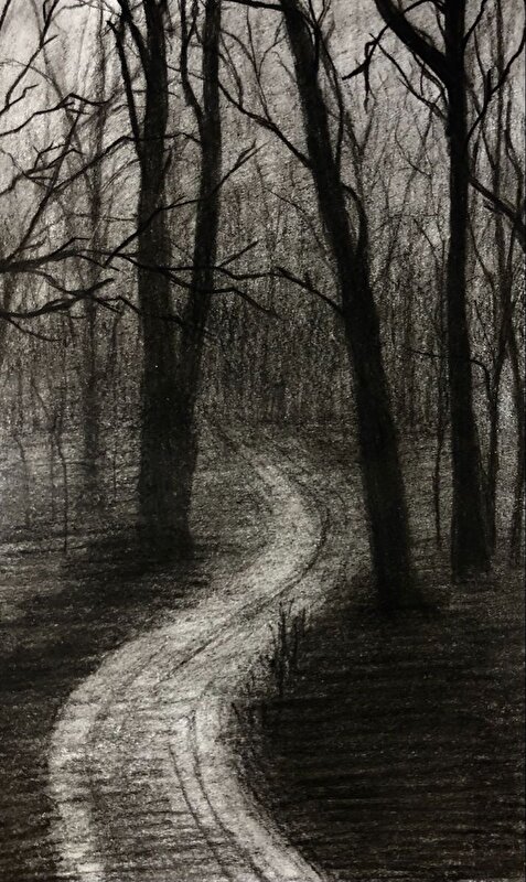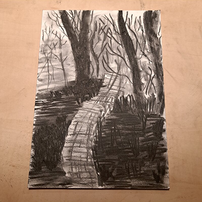 Dat ziet er goed uit Ezellover, voor meer diepte in het landschapje kun je het pad naar achteren toe steeds ietsje smaller en donkerder maken.