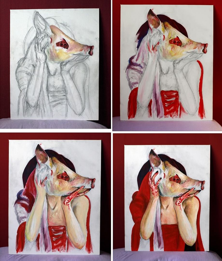 Na mijn laatste topic op UK (ergens in juni 2009 geloof ik) vond ik het toch wel weer eens tijd worden om 'n nieuwe te openen. Ik ging toelating doen aan de Koninklijke Academie van Beeldende Kunsten (richting: Beeldende Kunst) en vlak voor mijn 1e toelating kwam ik erachter dat ik eigenlijk geen recent schilderij naar mijn smaak had, dus zo begon ik aan deze. Kwam uiteindelijk wat tijd tekort dus zelf vind ik hem voor het mooie nog nét niet helemaal af, het kleed is vrij snel gedaan en ook de - voor ons - linkerhand en dat deel van de kop. Ik denk dat ik die (en wat andere slordige) stukjes nog wat ga bijwerken, mocht men daar nog tips voor hebben hoor ik ze graag. Ik twijfel nog of ik wat aan de achtergrond zal doen of niet.