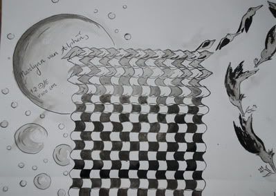 ) zoals ik al zei mocht je kiezen uit een aantal "stijlen" en koos ik "escher", maar dus niet zijn (zonder twijfel geweldige gezichtsbedrog!) maar de vormverandering. En die heb ik weer uitgewerkt op mijn manier.