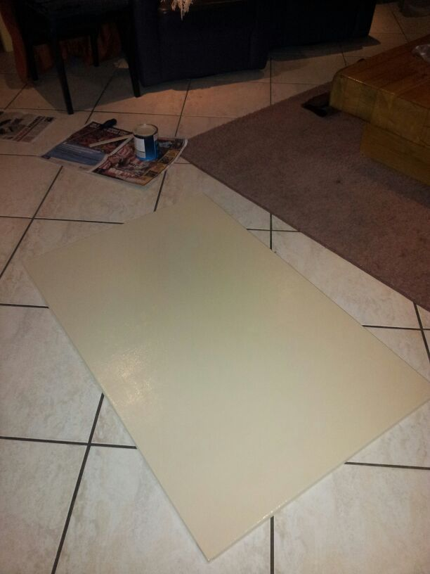 Hier heb ik het doek geschilderd, de kantjes heb ik inmiddels ook gedaan.