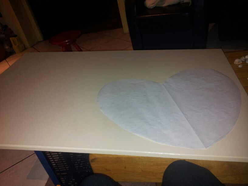 Op tekenpapier heb ik een hartje uitgeknipt. Door hem door midden te vouwen word hij gelijk aan beide kanten.