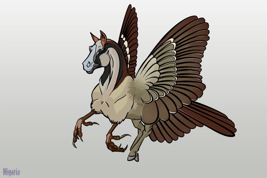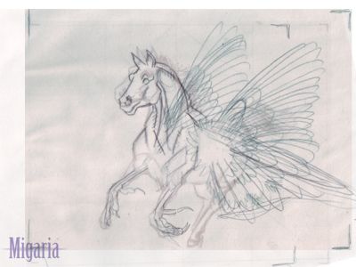 Ohja! er bestaat nog zoiets als een hippogriph, ff kijken of mij dat lukt... los vogelpootjes erbij getekend in dezelfde vorm en beweging van het paard, en dan krijg je zoiets als dit: