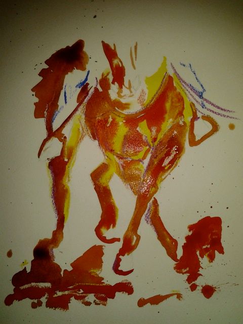 Akhal Teke, inkt, ecoline en zeezout, 24x32 300gr aquarelpapier
