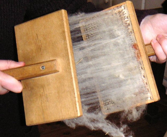 En toen kon ik eindelijk echt beginnen! Van een Bokker (nobje) heb ik een poos geleden een flinke zak bruine alpacawol gekregen, en dat komt voor naaldvilten echt perfect van pas! Het vilt erg fijn, maar ik heb helaas (nog) geen wolkaarder, dus het was een beetje behelpen en is daarom iets "rommeliger" dan ik zou willen.. (dit is wolkaarden)