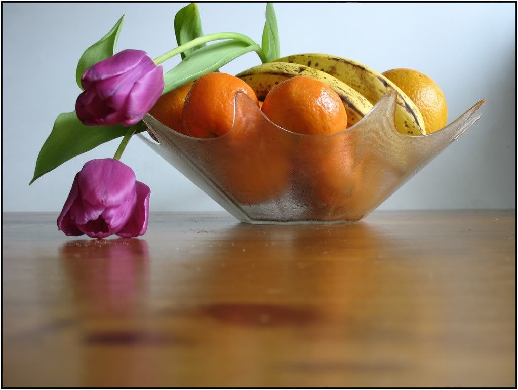 3. Fruitschaal met bloemen zwart - wit.