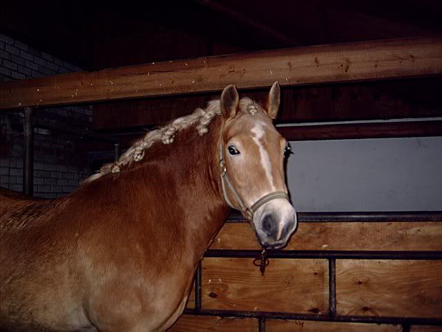 Mijn haflinger staat áltijd met vlechten. Gewoon van die losse vlechten. Dan heb ik er ook nooit last van en groeien ze lekker door Tong uitsteken Met een wedstrijd vind ik ze los heel mooi of anders een mooi strakke hengstenvlecht,