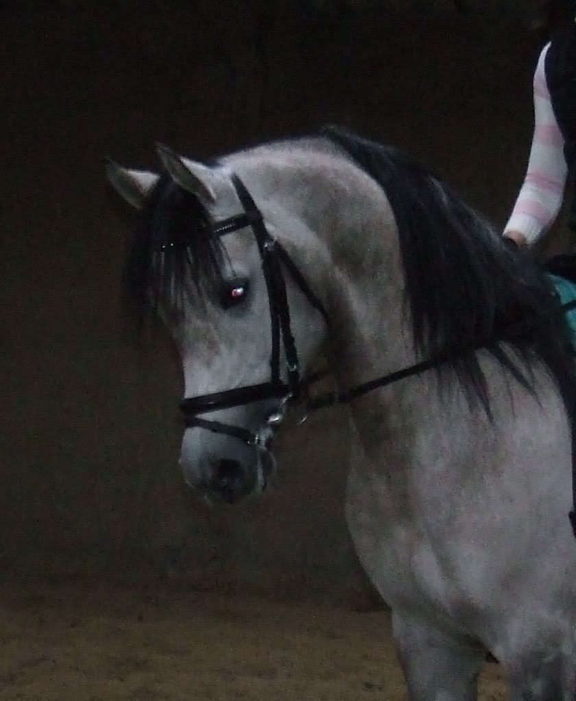 Bliksem was de enige van de 3 die nog onbeleerd was, precies zoals ik het wilde. En sinds juli/aug is hij onder het zadel. Citaat:Gelukkig is ze een bruinschimmel, dus volledig wit wordt ze niet..