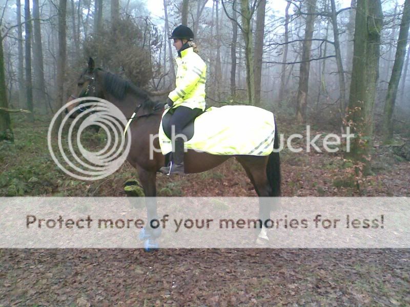 En mijn paard had nog zo een fluo 'uitrijdeken'. Ik viel wel op in het donker denk ik zo