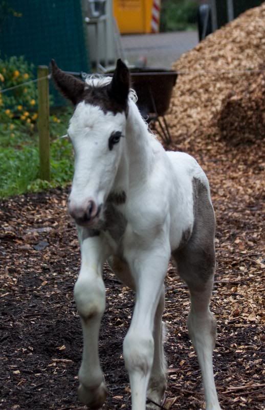 Wat een gaaf veulen! Prachtige aftekeningen, en wat een heerlijk koppie heeft ie <3 . Op de foto's waar hij staat, ziet ie er enorm trots en zelfbewust uit. Heel veel plezier met je nieuwe aanwinst, maar dat gaat wel lukken denk ik ;)