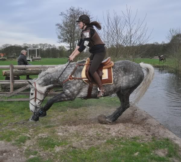 Was super trots op 'm, heeft alles in 1 keer gesprongen, alleen de sloot was nog spanennd maar met wat hulp van ander paard sprong ie er na 2 keer toch maar over! :D