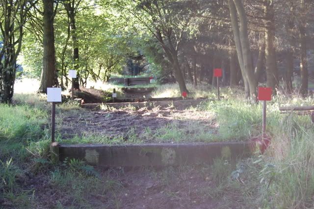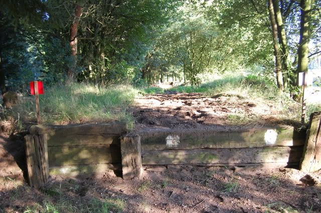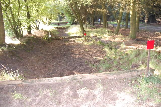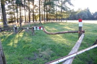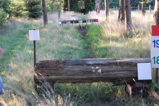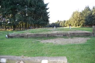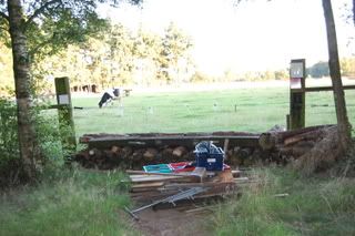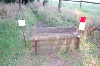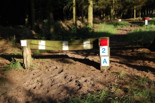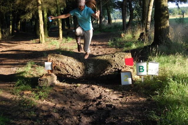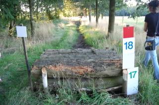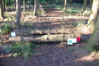 4 voor 80 en 100cmspring je 2 keer erop, en bovenop zit een slootje, dan de afsprong en door naar een Flinke houtstapel! (Breed) Die ik echt niet ga doen, ik doe die opsprongen enz. en dan draai ik om richting die hindernis voor de 60cm