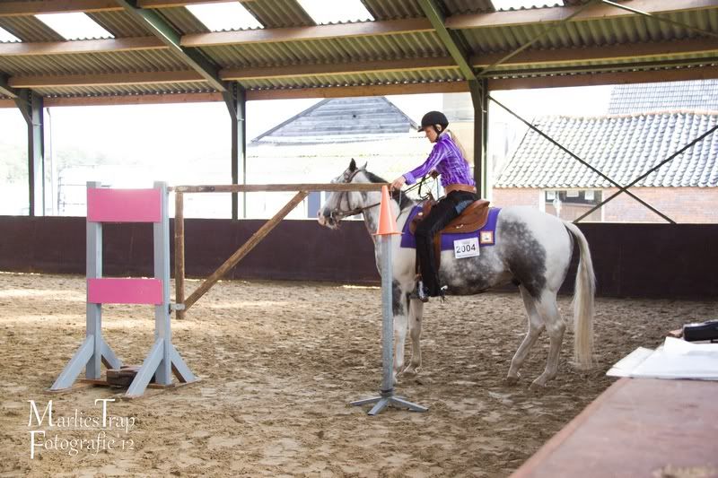 O, dan stonden jullie voor ons vast. Liep nog even naar jullie toe, toen jullie je paard gingen uitladen. Jullie zagen er netjes uit, leuk dat paars, staat goed.