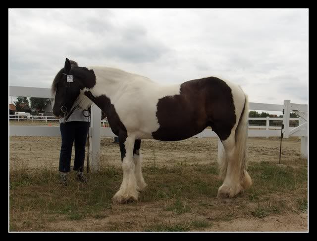 anders is ze in de keurring niet vooruit te branden, maar nu stapte ze lekker vlot en draafde ze ruim en soepel aan een mooi tempo... Dus ik dacht: dàt wordt nu eens een vétte eerste premie! (ze heeft al twee keer 147 punten gehaald)