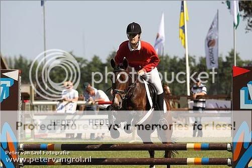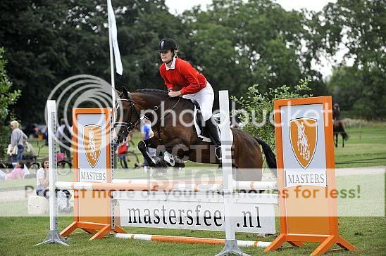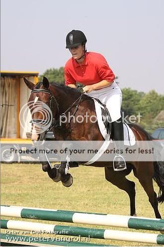 En sinds maart 2009 ben ik officieel gestart met haar in de B dressuur. Na lange tijd oefenen, veel hulp van mijn instructrice, nog steeds geen winstpunt in de B. Heel vaak had ik net 178/179 punten. Op een gegeven moment is de lol er wel een beetje vanaf als je gewoon een degelijke, foutloze proef rijdt en dan alsnog 163 punten rijdt omdat je pony te diep loopt, waar het de vorige keer te hoog liep. Maar juli 2009 was hij er dan eindelijk, we hadden een winstpunt! Diezelfde dag nog B-D springen gestart. 2x foutloos en een 7e plaats! :D We hadden de smaak te pakken. Nu staat de teller op B+21 en willen we na de Gelderse Kampioenschappen de overstap naar de L maken.