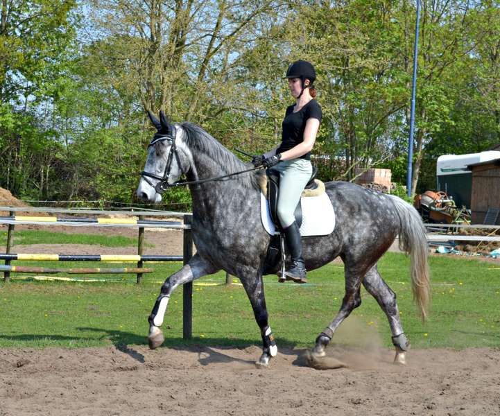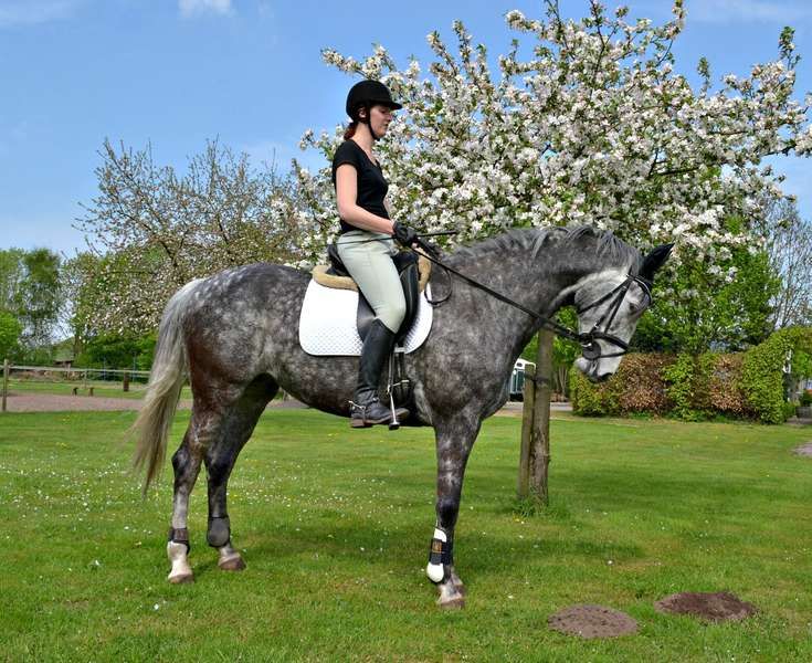 Ze is erg fijn te rijden! Ze is heerlijk licht in de hand en super fijn aan het been. Puntjes waar we aan werken zijn bij Bon de oprichting/verzameling. Ze wordt nog graag wat te lang en komt er dan achter niet genoeg bij. Zelf moet ik vooral mijn schouders wat meer terug houden. We hebben ook al dik een half jaar geen les meer gehad, maar waarschijnlijk volgende week weer een lesje pakken!